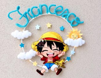 Oggi vi portiamo nel magico mondo di One Piece con un fiocco nascita davvero dolcissimo. Il protagonista è il simpaticissimo Rufy, già realizzato in passato anche in versione con Chopper 🐻✨, ma che in questa creazione brilla da solo. La mamma Federica ha scelto di dedicare il fiocco nascita solo con lui, rendendolo il simbolo …